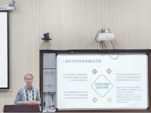 高德步教授以“科学主义与人文转向:论中国经济学的当代建构”为题,深刻阐述了中国经济学的发展方向。他强调,中国经济学应首先“以人为本”,重建“以人为本”的价值理念,从物的经济学转变为人的经济学,具体体现为“以民为本”的民生经济学。同时中国经济学还应体现“善”,恢复经济学的伦理性质,研究人的理性、感性和仁性,处理好“义”与“利”的关系,中国经济学应体现“感性”和“仁性”,成为超越人的理性的“人文”经济学,反映新时代人们对美好生活的追求。