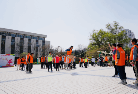 长绳羁绊,“绳”采飞扬。在活动的第二单元,同学们从单人跳到三人跳,再到五人跳,个个情绪高涨,摩拳擦掌,各显身手。你看,同学们配合着长绳的律动,以飞快的速度跳跃,摇绳的同学专注的神态是那么可爱,努力配合着大家,尽量减少失误。在比赛过程中,笑声与汗水共同挥洒,在长绳的摆动与灵活跳动中的身影,大家收获了运动的喜悦与满足。