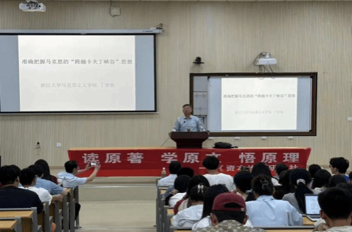 丁教授就马克思的“跨越卡夫丁峡谷”思想进行了深入解读,该思想旨在揭示资本主义社会的矛盾和发展规律,为实现社会主义和共产主义提供理论指导。为阐述这一思想的科学内涵,丁教授向全院同学介绍了两篇马克思的文稿,分别为《卡尔·马克思在尤·茹柯夫斯基先生的法庭上》和《给<祖国纪事>杂志编辑部的信》,分享了对“跨越卡夫丁峡谷”思想的见解与思考,给同学们留下了深刻印象与启发。