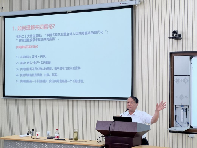 讲座中,张利庠教授首先从共同富裕的内涵开始讲述,指出共同富裕不是少数人的富裕,也不是平均主义的富裕,实现共同富裕就是共建、共享、共富,是一个长期的过程;张教授接着从五个方面为大家解读了新农村建设与乡村振兴的区别;最后,基于对共同富裕、乡村振兴的理解,张利庠教授高屋建瓴地提出了实现乡村振兴的路径与策略。他通过幽默风趣的表达和深入浅出的案例进行阐述,同时和参与师生进行了良好互动,整个讲座氛围十分活跃。